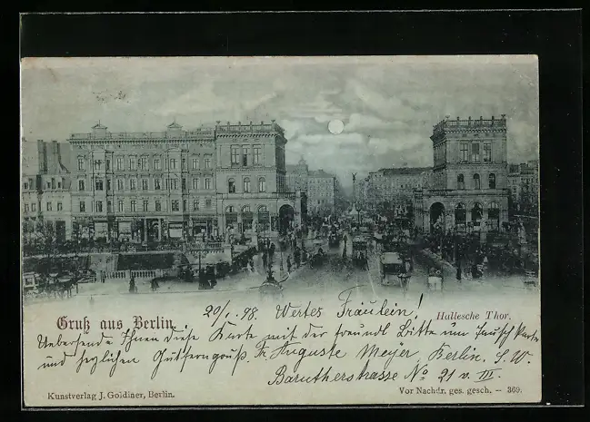 Mondschein-AK Berlin-Kreuzberg, Hallesches Tor aus der Vogelschau