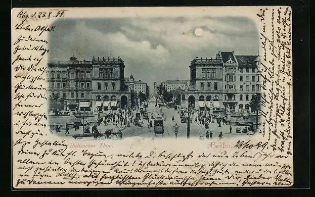 Mondschein-AK Berlin, Strassenbahn am Halleschen Tor