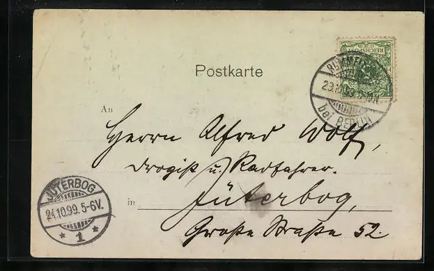 alte Ansichtskarte, gelaufen 1899, Eckknicke re., guter Zustand