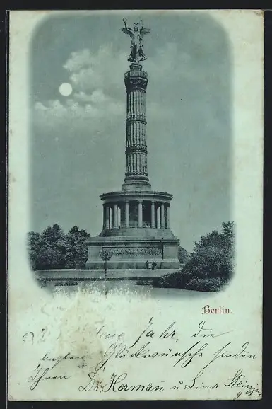 Mondschein-AK Berlin-Tiergarten, Partie an der Siegessäule