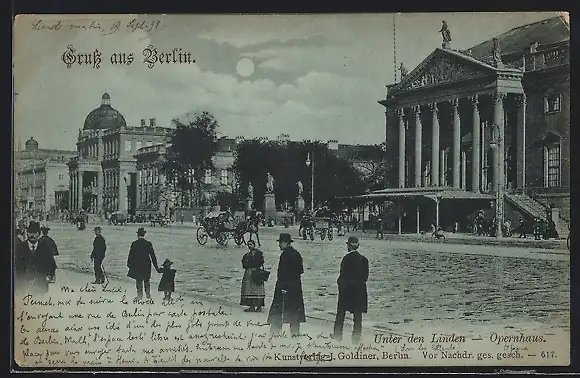 Mondschein-AK Berlin, Unter den Linden am Opernhaus