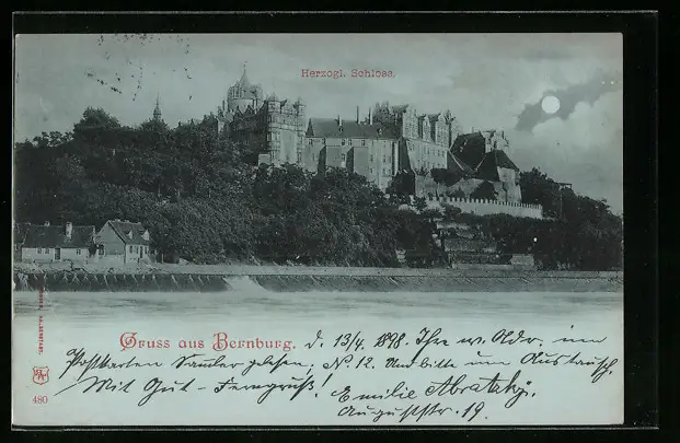 Mondschein-AK Bernburg, Ansicht des Herzoglichen Schlosses