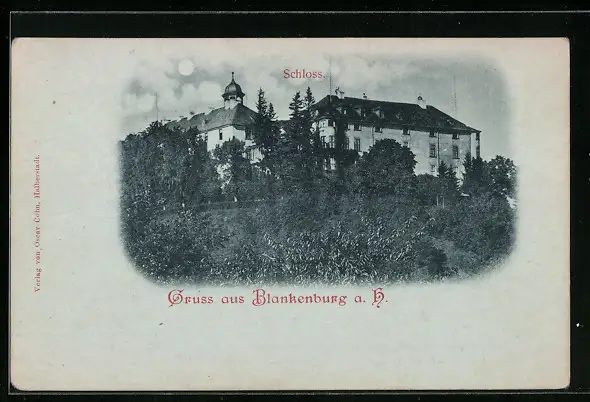 Mondschein-AK Blankenburg a. Harz, Ansicht des Schlosses