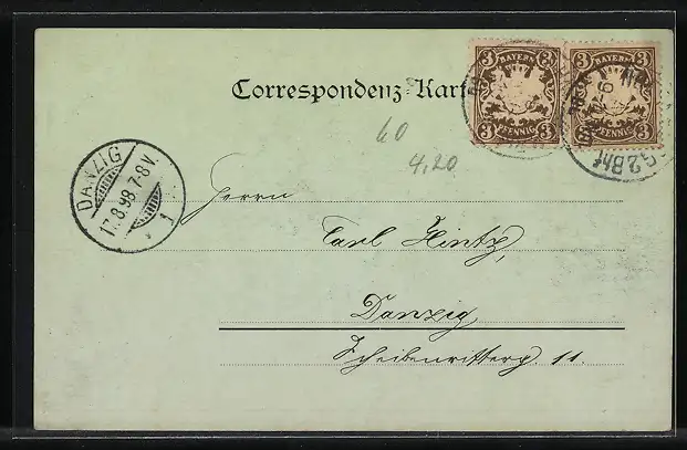 alte Ansichtskarte, gelaufen 1898, guter Zustand