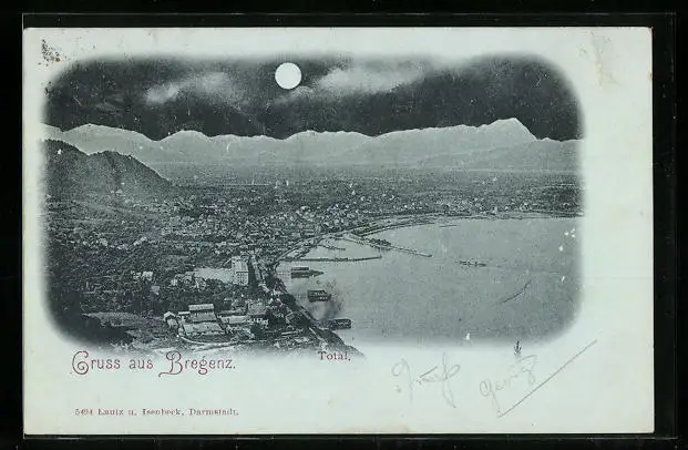 Mondschein-AK Bregenz, Totalansicht