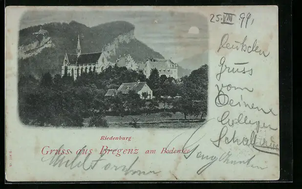 Mondschein-AK Bregenz am Bodensee, Riedenburg