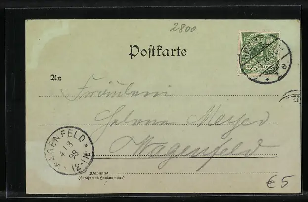 alte Ansichtskarte, gelaufen 1898, Albumspuren, guter Zustand