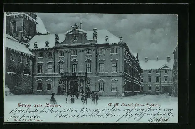 Mondschein-AK Brünn / Brno, K. K. Statthalterei-Gebäude