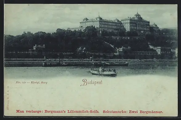 Mondschein-AK Budapest, Boote unter der Königlichen Burg