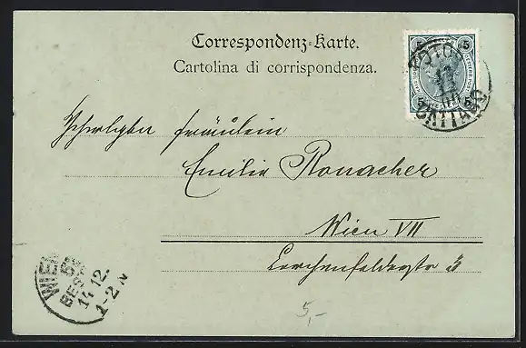 Personenbezogene Daten auf der Rückseite der Karte wurden durch blauen Textmarker unkenntlich gemacht. Die blauen Stellen sind auf die Vorderseite durchgeweicht und wirken sich negativ auf das Postkartenfoto aus