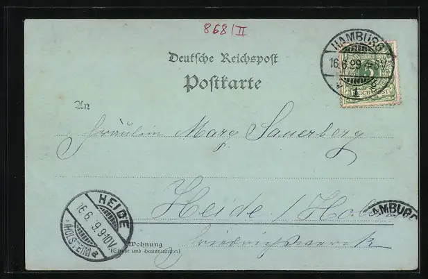 alte Ansichtskarte, gelaufen 1899, guter Zustand