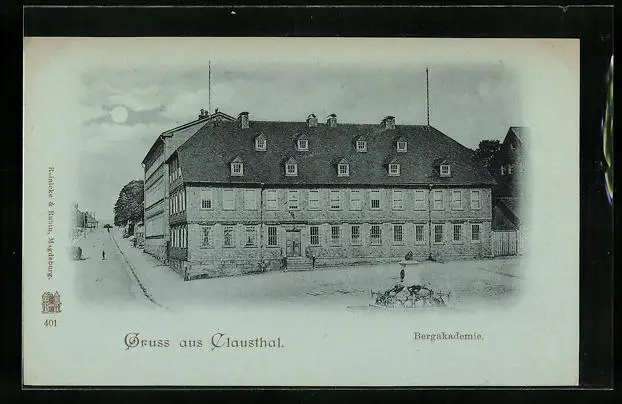 Mondschein-AK Clausthal, Blick zur Bergakademie