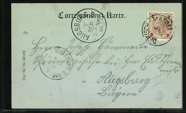 alte Ansichtskarte, gelaufen 1899, guter Zustand