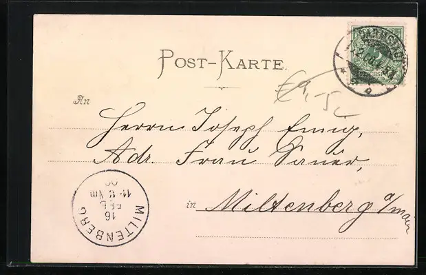 alte Ansichtskarte, gelaufen 1900, guter Zustand