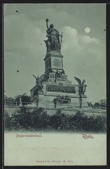 Mondschein-AK Das Niederwalddenkmal am Rhein
