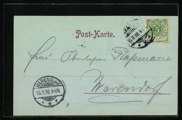 alte Ansichtskarte, gelaufen 1898, Bugspur li., guter Zustand