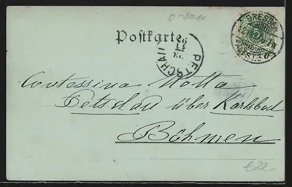 alte Ansichtskarte, gelaufen 1897, Bugspur li. oben, guter Zustand