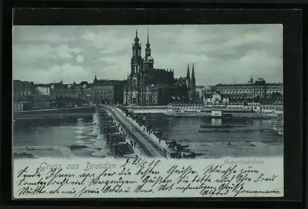 Mondschein-AK Dresden, Stadtansicht mit Augustusbrücke