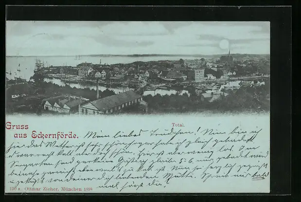 Mondschein-AK Eckernförde, Totalansicht