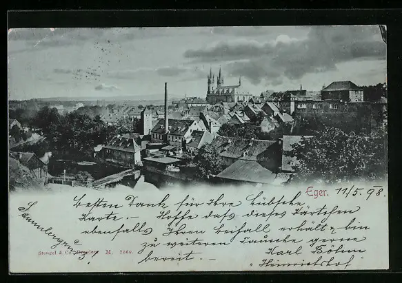 Mondschein-AK Eger, Teilansicht aus der Vogelschau