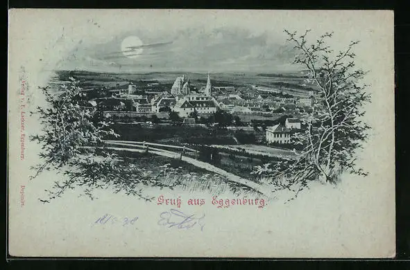 Mondschein-AK Eggenburg, Totalansicht mit Vollmond