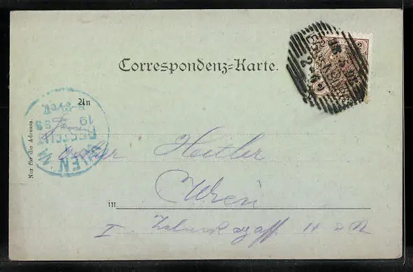 alte Ansichtskarte, gelaufen 1899, Stempelspur, guter Zustand