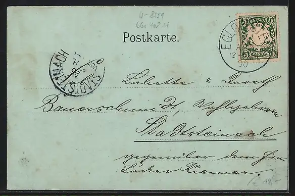 alte Ansichtskarte, gelaufen 1900, Stempelspur, guter Zustand