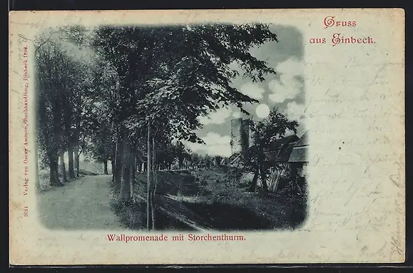 Mondschein-AK Einbeck, Wallpromenade mit Storchenturm