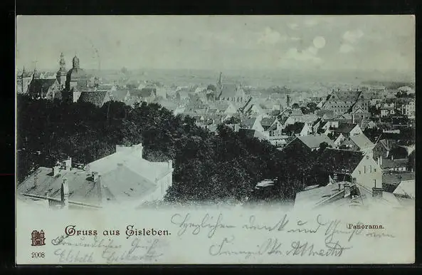 Mondschein-AK Eisleben, Panorama aus der Vogelschau