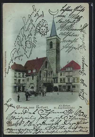 Mondschein-AK Erfurt, Die St. Aegidienkirche in der Altstadt