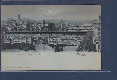 Mondschein AK Firenze Veduta dei Lungarni coi Ponti 1910