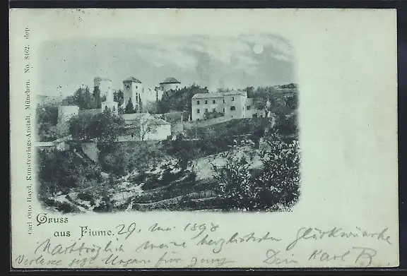 Mondschein-AK Fiume, Die Festung bei Nacht
