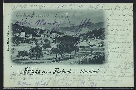 Mondschein-AK Forbach im Murgthal, Ortspartie