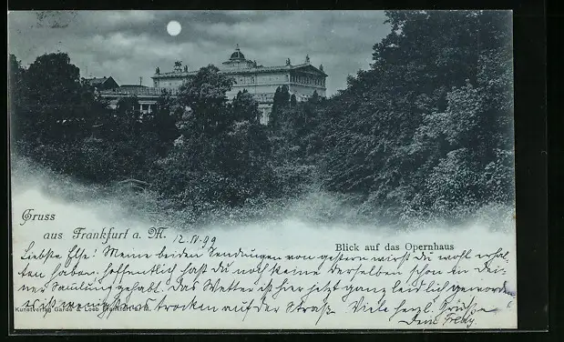 Mondschein-AK Frankfurt a. M., Blick auf das Opernhaus