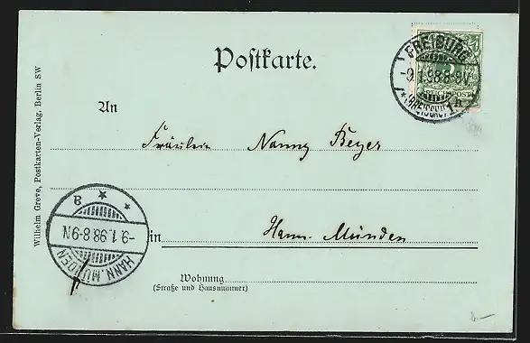 alte Ansichtskarte, gelaufen 1898, Eckknick li. unten, guter Zustand