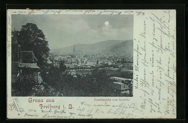 Mondschein-AK Freiburg i. B., Totalansicht vom Loretto
