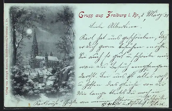 Mondschein-AK Freiburg i. Br., Münster im Schnee