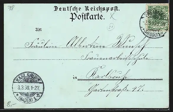 alte Ansichtskarte, gelaufen 1898, guter Zustand