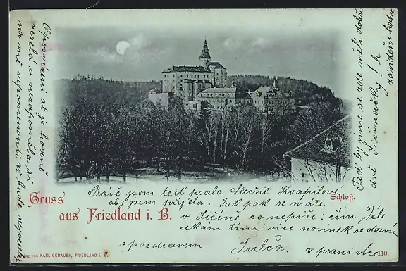 Mondschein-AK Friedland i. B., Schloss