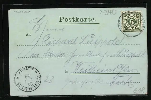 alte Ansichtskarte, gelaufen 1899, guter Zustand