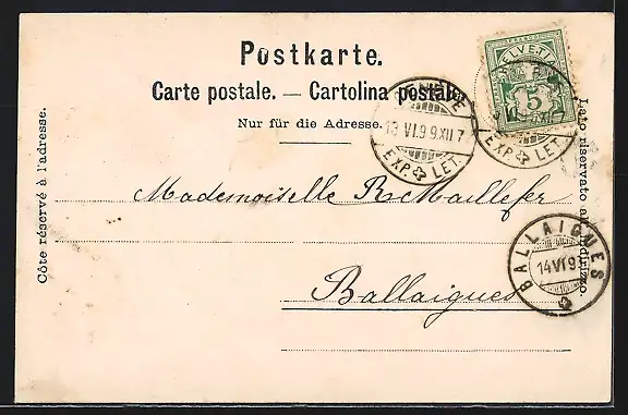 alte Ansichtskarte, gelaufen 1899, guter Zustand