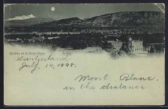 Mondschein-AK Genève, Vue Générale et le Mont-Blanc