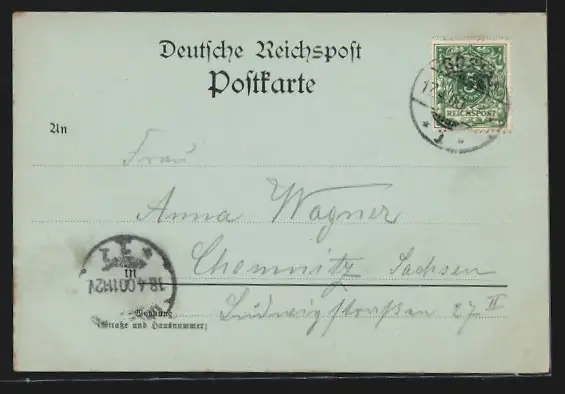 alte Ansichtskarte, gelaufen 1900, guter Zustand