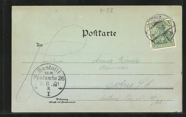 alte Ansichtskarte, gelaufen 1901, Eckknick obenre., guter Zustand