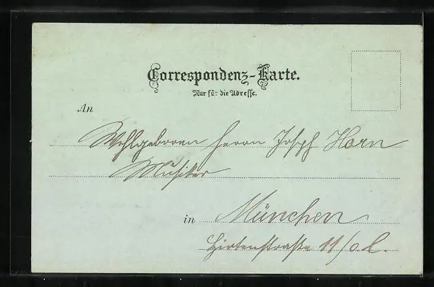 Personenbezogene Daten auf der Rückseite der Karte wurden durch blauen Textmarker unkenntlich gemacht. Die blauen Stellen sind auf die Vorderseite durchgeweicht und wirken sich negativ auf das Postkartenfoto aus