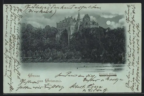 Mondschein-AK Grimma, Schloss Döben