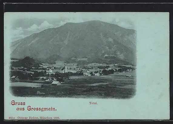 Mondschein-AK Grossgmain, Totalansicht mit Kirche