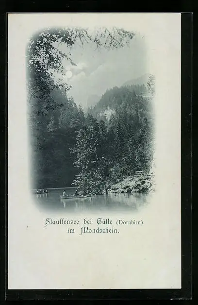Mondschein-AK Gütle bei Dornbirn, Ruderpartie auf dem Stauffensee