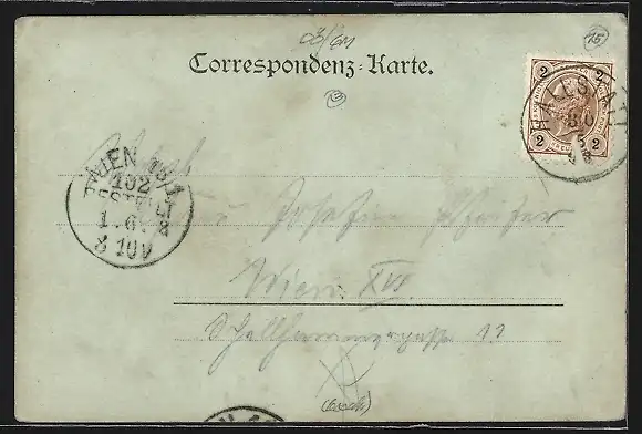 alte Ansichtskarte, gelaufen 1898, Briefmarke entfernt, Eckknicke oben, Stempelspur, guter Zustand