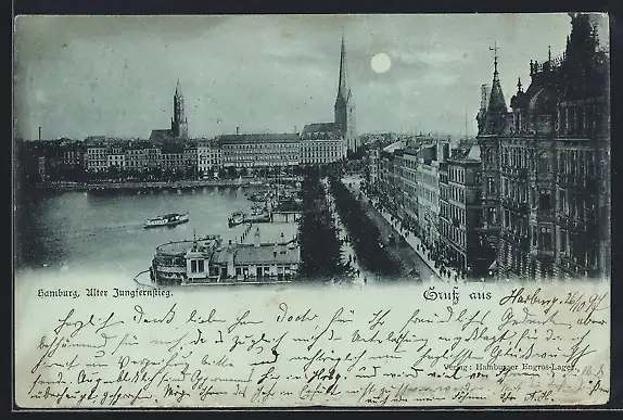 Mondschein-AK Hamburg-Neustadt, Alter Jungfernstieg aus der Vogelschau